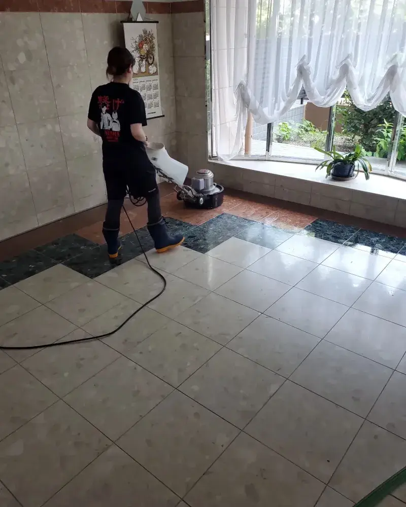 A:まず大分市内のアパートやマンションの定期清掃を行い、定期清掃の内容ややり方を少しずつ覚えていきました。